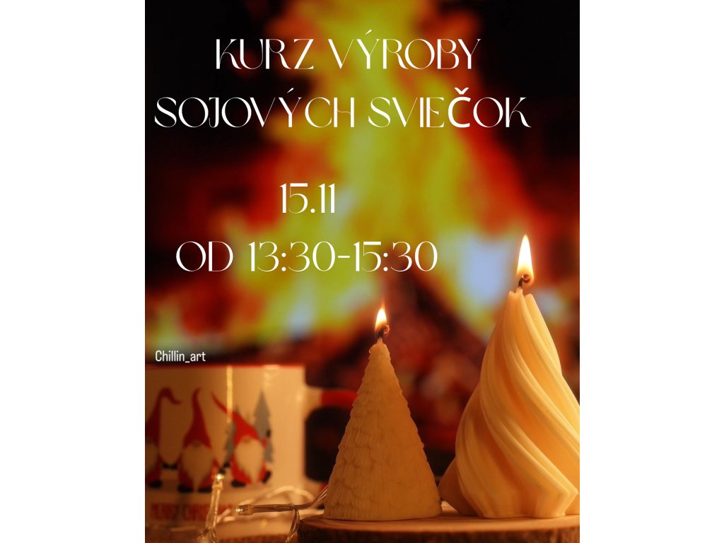 Počas kurzu si vytvoríte vlastné originálne sviečky zo sójového vosku. Vyrobiť si môžete 2 až 4 sviečky v závislosti od zvolených rozmerov, alebo jednu väčšiu sviečku v kokosovej miske z prírodného kokosového vosku.